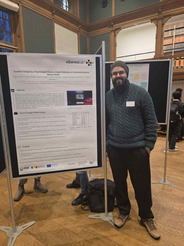 At GALA 2025 in Utrecht, he presented a short pitch and poster on “Excellium: Designing a Psychological Visual Novel to Foster Reflection on University Students’ Mental Health.”